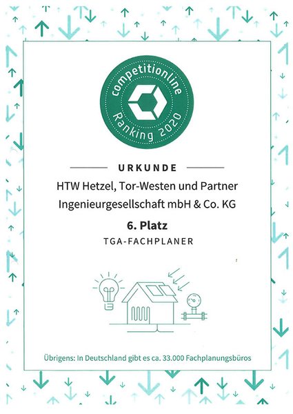 Die Ergebnisse des Competitionline Ranking ergeben sich aus den auf Competitionline.com veröffentlichten Ergebnissen im Laufe eines Jahre. HTW belegt den großartigen 6. Platz in der Kategorie TGA-Fachplaner. Damit sind wir 11. Plätze aufgestiegen!