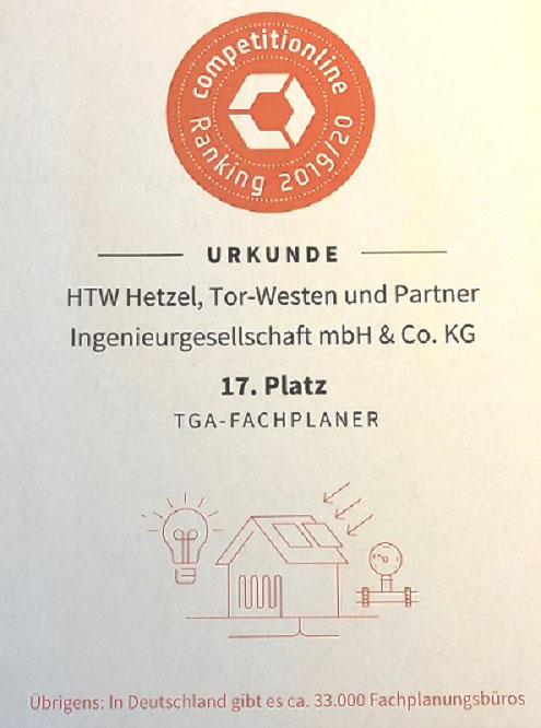 Das Competitionline Ranking wertet ausschließlich Wettbewerbsergebnisse aus dem deutschsprachigen Raum aus. Die erfolgreichsten Büros werden einmal im Jahr ermittelt. Auch wir sind im competitionline.com Ranking 2019/20 dabei -HTW ist auf Platz 17 von 33.000 Planungsbüros - Wir freuen uns!