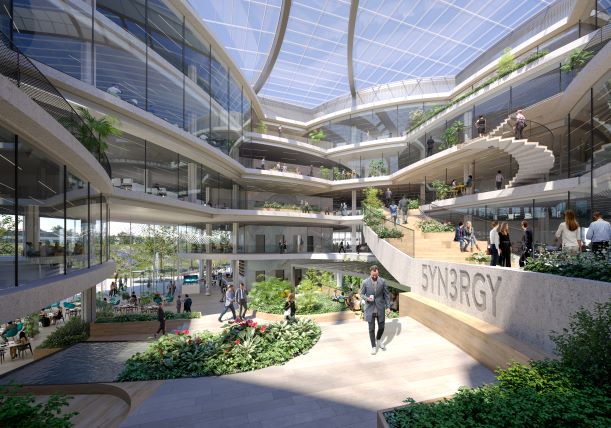 Die Welt ist im stetigen Wandel - dieser Entwicklung müssen auch neue Bürogebäude folgen. Aus technischer Perspektive sind dabei nicht nur nachhaltige Lösungen der TGA zu projektieren, sondern ebenso Systeme, welche den wechselnden Nutzungen im Gebäude entsprechen. Dazu wird im Bauvorhaben 5YN3RGY ein zwei Stufen System etabliert: eine unsichtbare Betonkerntemperierung deckt die thermischen Grundlasten, während durch den Einsatz von Unterflurkonvektoren und die Option, Deckensegel an thermische Steckdosen anzuschließen, der Mieter selber die Möglichkeit hat, das Klimasystem an seine Bedürfnisse anzupassen.