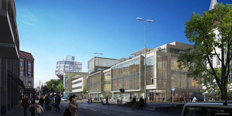 Der Boulevard Berlin entstand auf dem Areal der ehemaligen Warenhäuser Karstadt und Wertheim und wurde in zwei Bauabschnitten realisiert. Das bereits im April 2009 eröffnete neue Karstadt-Warenhaus mit ca. 24.000 m² Gesamtmietfläche, neuem Store-Design und Exklusivmarken bildete den ersten Bauabschnitt des Boulevard Berlin. Der zweite Bauabschnitt wurde bis Anfang 2012 fertiggestellt und sah die denkmalgerechte Sanierung der Wertheim-Fassade vor. Quartiersbildende eigenständige Häuser mit individuellen Fassaden schließen sich dahinter an. Hier entstand ein völlig neues, lebhaftes Einkaufsquartier mit überdachten Fußgängerzonen, Brücken, Galerien, Terrassen und Passagen. Verbindendes Element beider Bauabschnitte ist eine großzügig gestaltete, glasüberdachte Promenade.