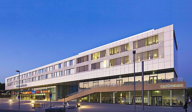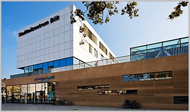 Neben den Shopping-Arcaden entstand ein Stadtteilzentrum (1.500m²) mit öffentlichem, barrierefreiem Schwimmbad (3.000m²), Stadtbibliothek (450m²) und Bürgerzentrum mit Veranstaltungssaal für die Stadt Düsseldorf.
