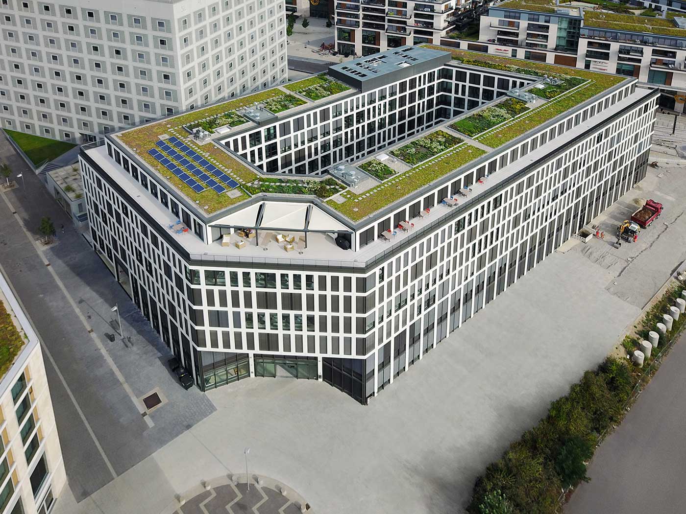 Das Gebäude hat eine Zertifizierung nach DGNB Platin erhalten.