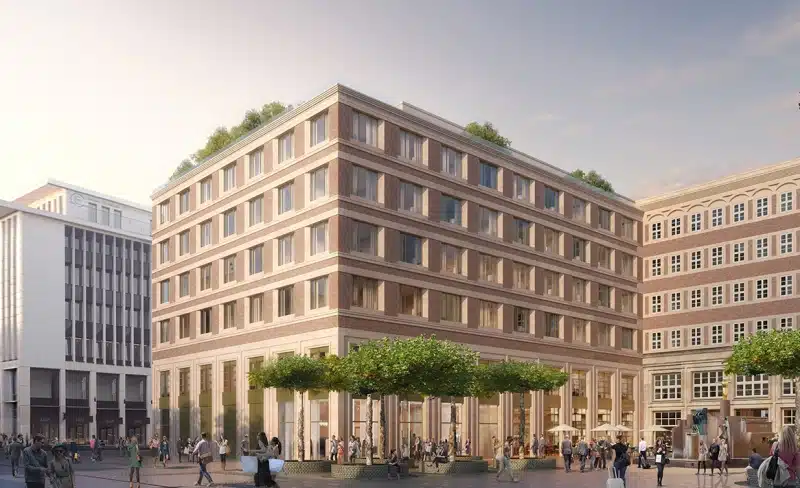 Die zukünftige Multi-Use-Immobilie trägt mit hochwertigen Retail-Flächen im Erdgeschoss und einer öffentlich zugänglichen Rooftop-Bar mit Restaurant und Ausblick über die Stadt zur Aufwertung des Platzes bei.