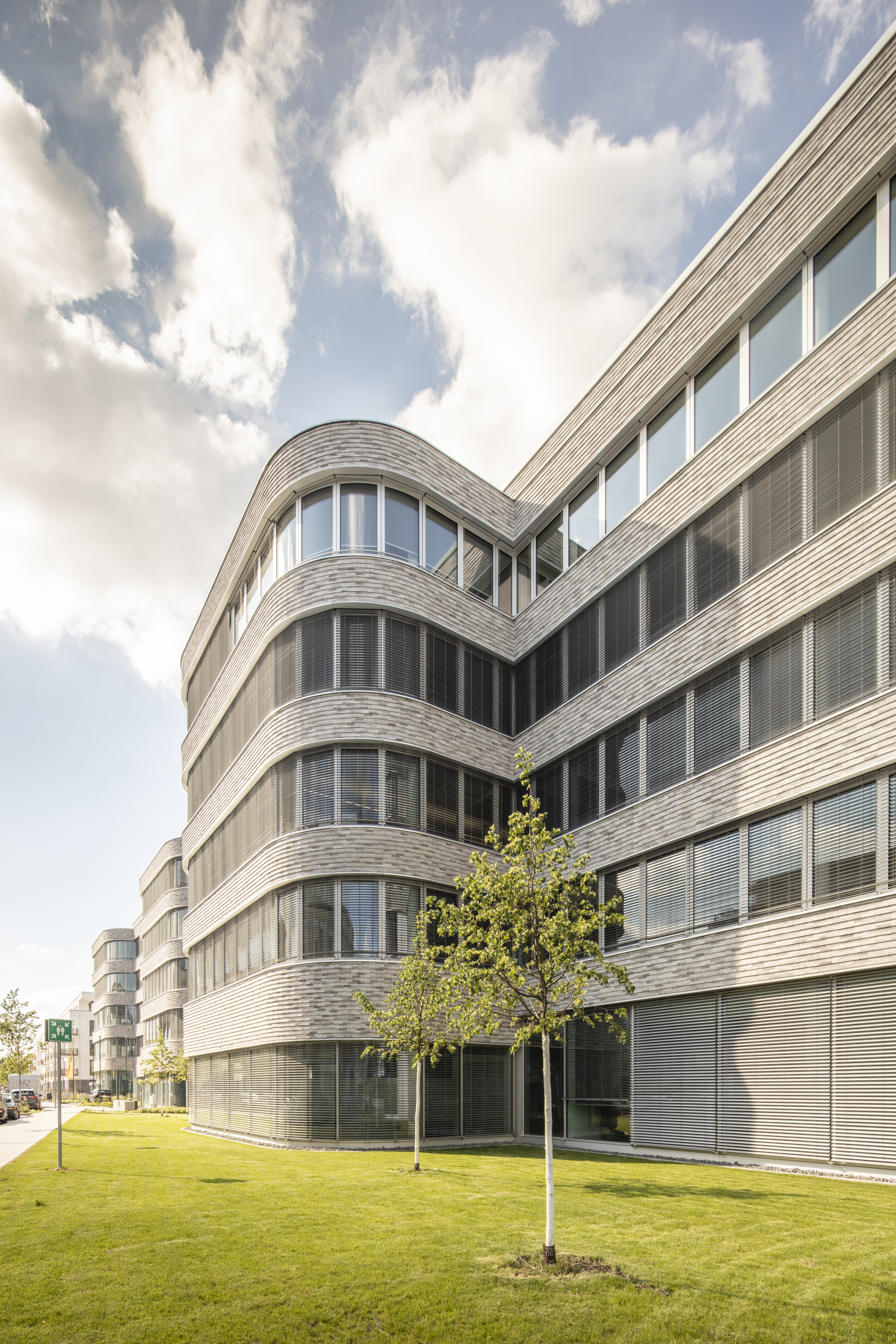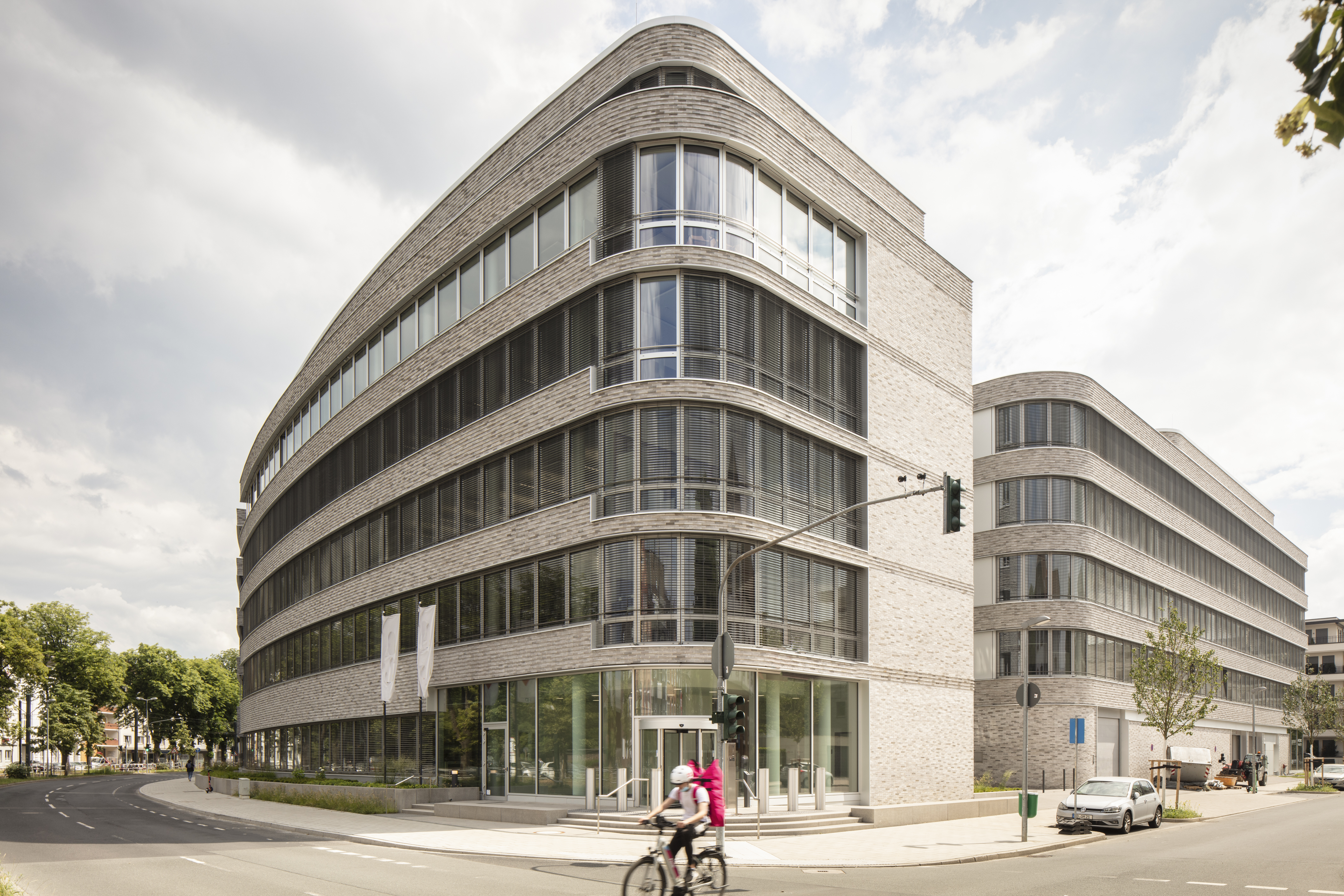 Geplant ist der Neubau eines 6-geschossigen Bürogebäudes mit circa 35.764 m² BGF im Stadtteil Oberkassel in Düsseldorf. Das Gebäude verfügt über eine 2-geschossige Tiefgarage mit circa 330 Stellplätzen. Die Regelgeschosse vom 1. bis 4. Obergeschoss verfügen über 9 separat vermietbare, flexibel ausbaubare Mieteinheiten, die über 7 Treppenhäuser mit Doppelaufzugsanlagen erschlossen werden. Im Staffelgeschoss sind weitere 6 Mieteinheiten vorhanden. Das Erdgeschoss wird von den 9 Mieteinheiten zu einem zentralen Bereich mit Konferenzräumen und einer Mitarbeiterkantine mit Küche zusammengefasst. Der Hauptmieter des Neubaus ist eine Bank mit circa 67 % der Mietflächen. Die Erschließung der Bank erfolgt über einen Haupteingang mit einer 2-geschossigen Eingangshalle am Schnittpunkt der Gebäudeschenkel sowie einem Nebeneingang nahe der Straßenbahnhaltestelle Rheinbahnhaus. Die Verteilung der Mitarbeiter auf die Aufzugsanlagen erfolgt über eine Magistrale im EG sowie über den von außen nicht zugänglichen Innenhof.